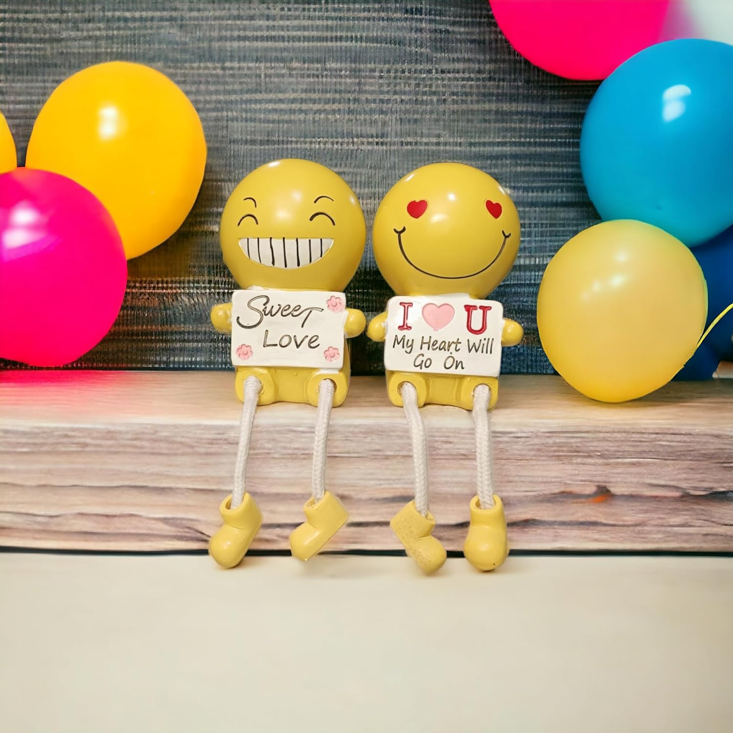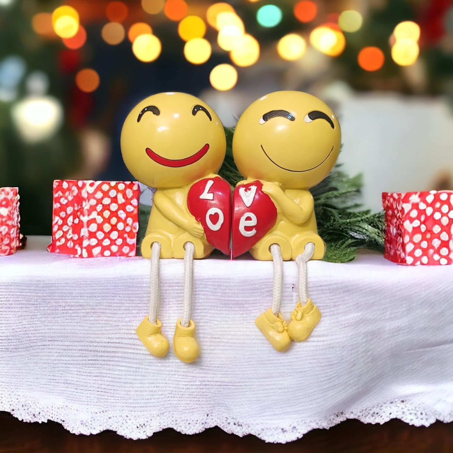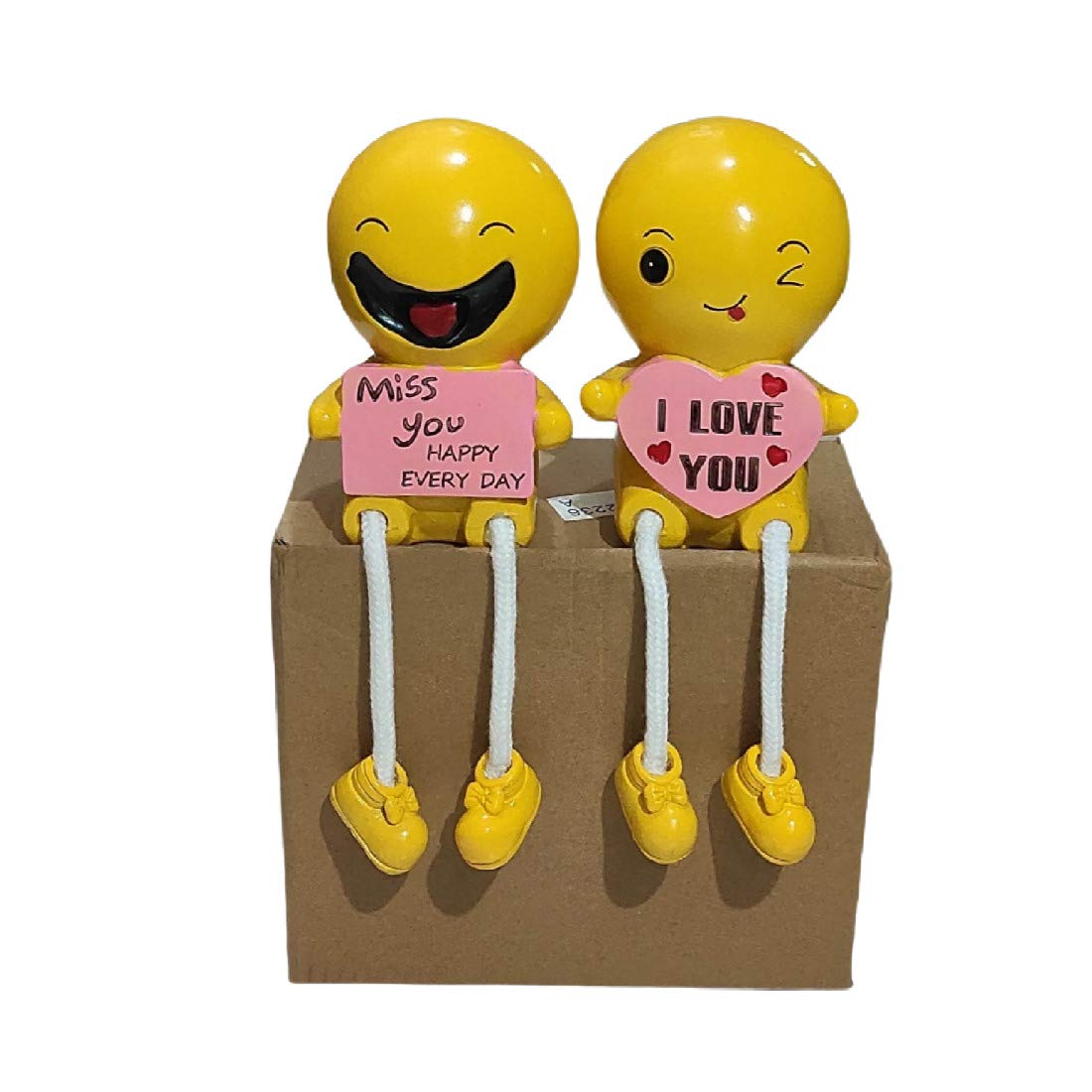Bestomak Romantic Valentine Gift Love Smiley Long Leg | Wedding Couple Dolls Decorative Showpiece Statue for Home Decor (Resin, 7x6 Inches) (Yellow)